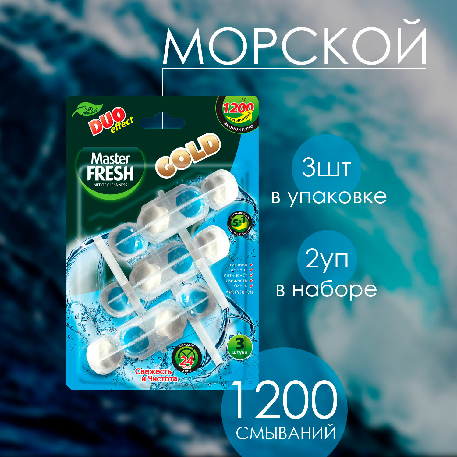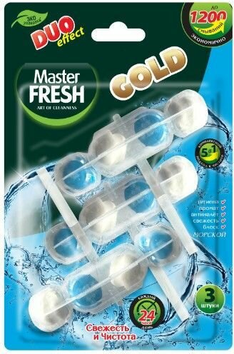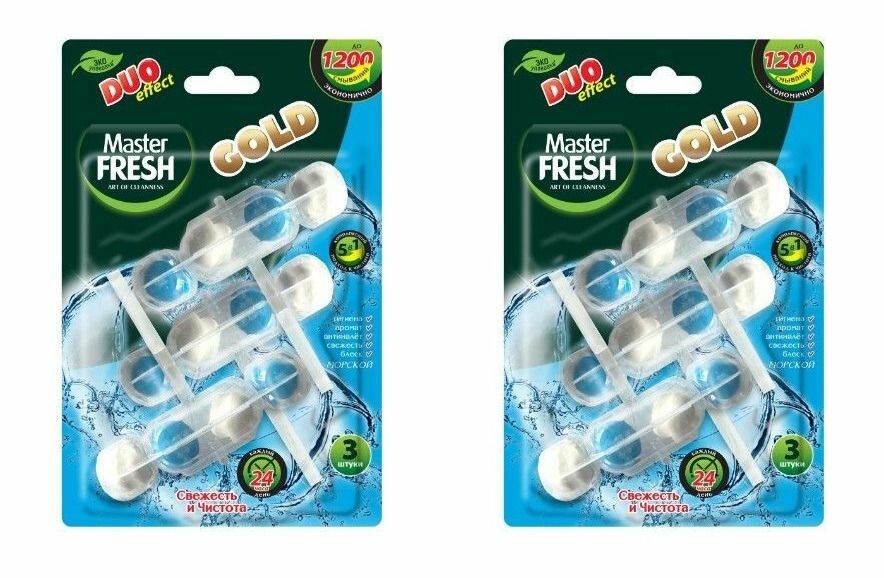 Купить Master Fresh Подвесной блок для унитаза Gold Duo Effect, 5 в 1, морской, 3 шт в уп, 2 уп.