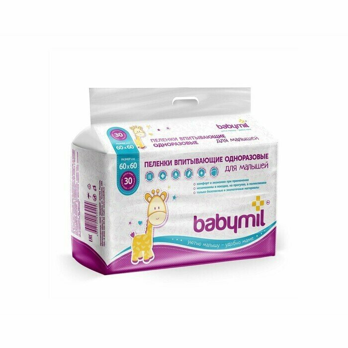 BabyMil Пеленки впитывающие одноразовые для малышей 60*60 см.(упаковка 30 штук)