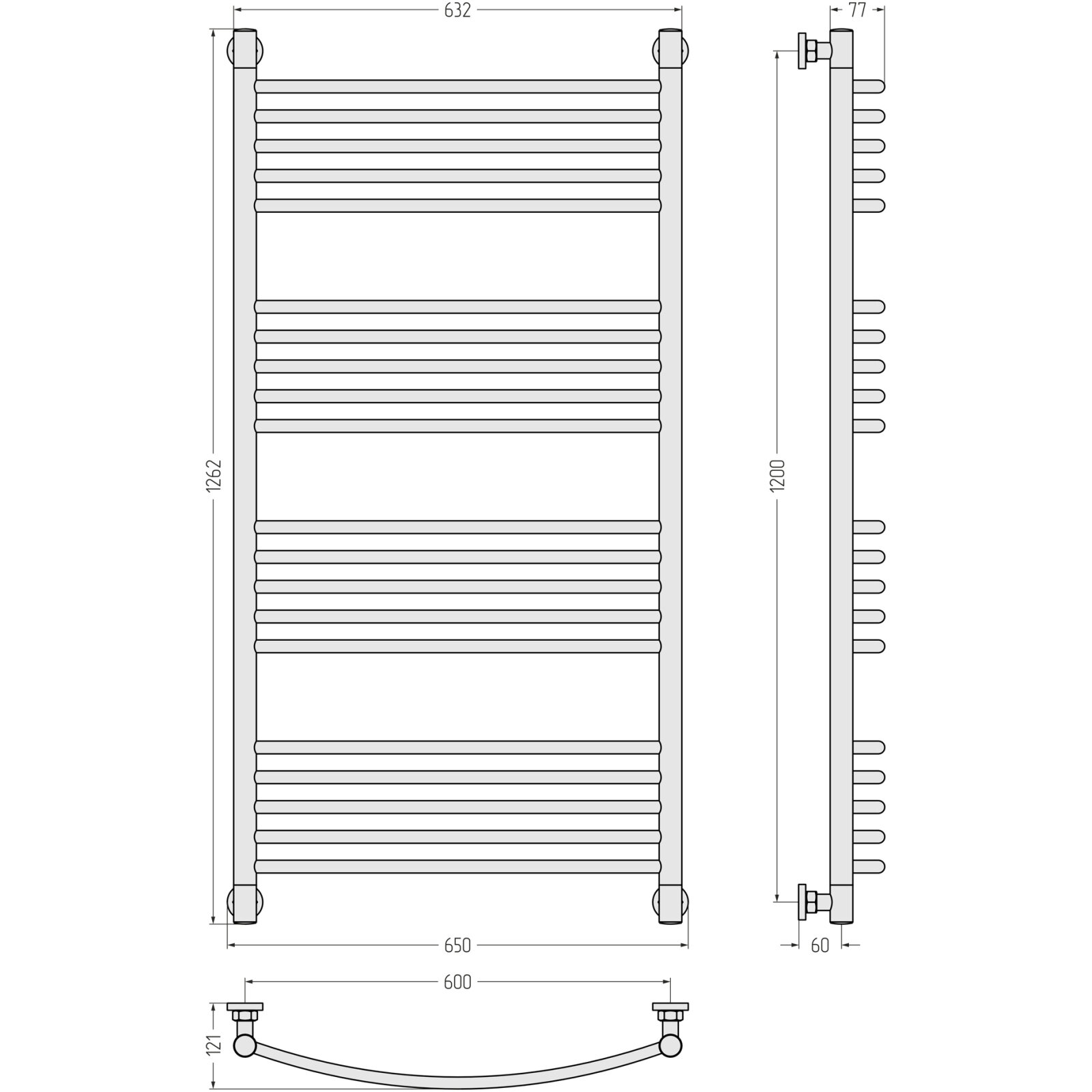Водяной полотенцесушитель Сунержа Богема+ (выгнутая) 1200x600 арт. 00-0221-1260