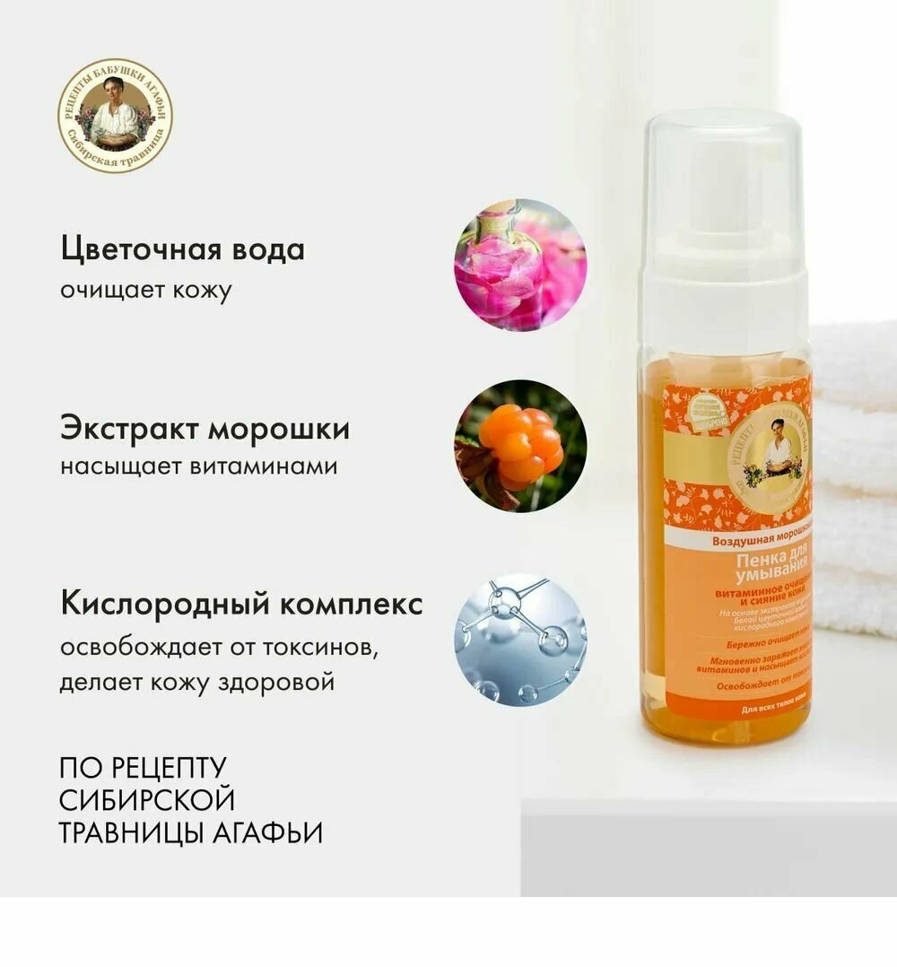 Рецепты бабушки Агафьи пенка для умывания воздушная морошковая, 150 мл