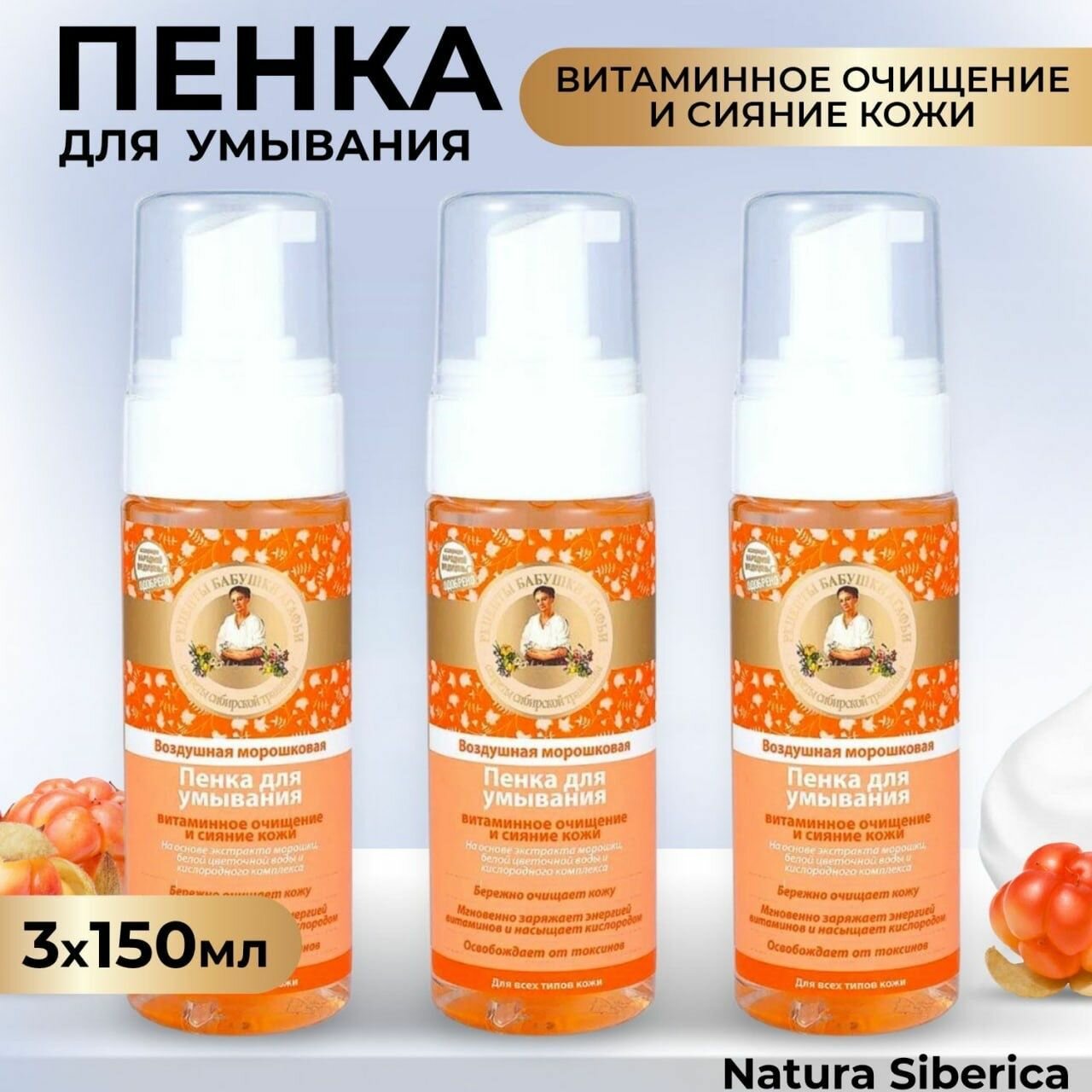 Купить Пенка для умывания Рецепты бабушки Агафьи Воздушная Морошковая, 150мл х 3шт