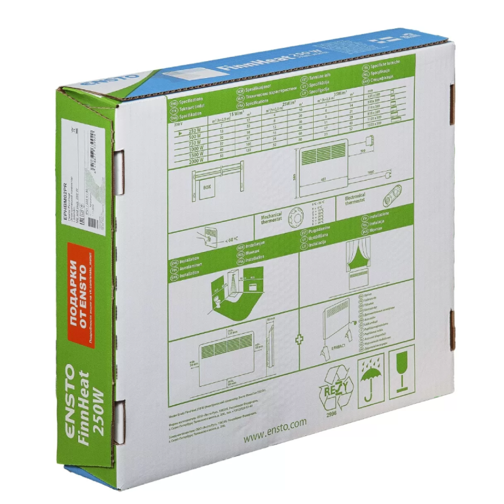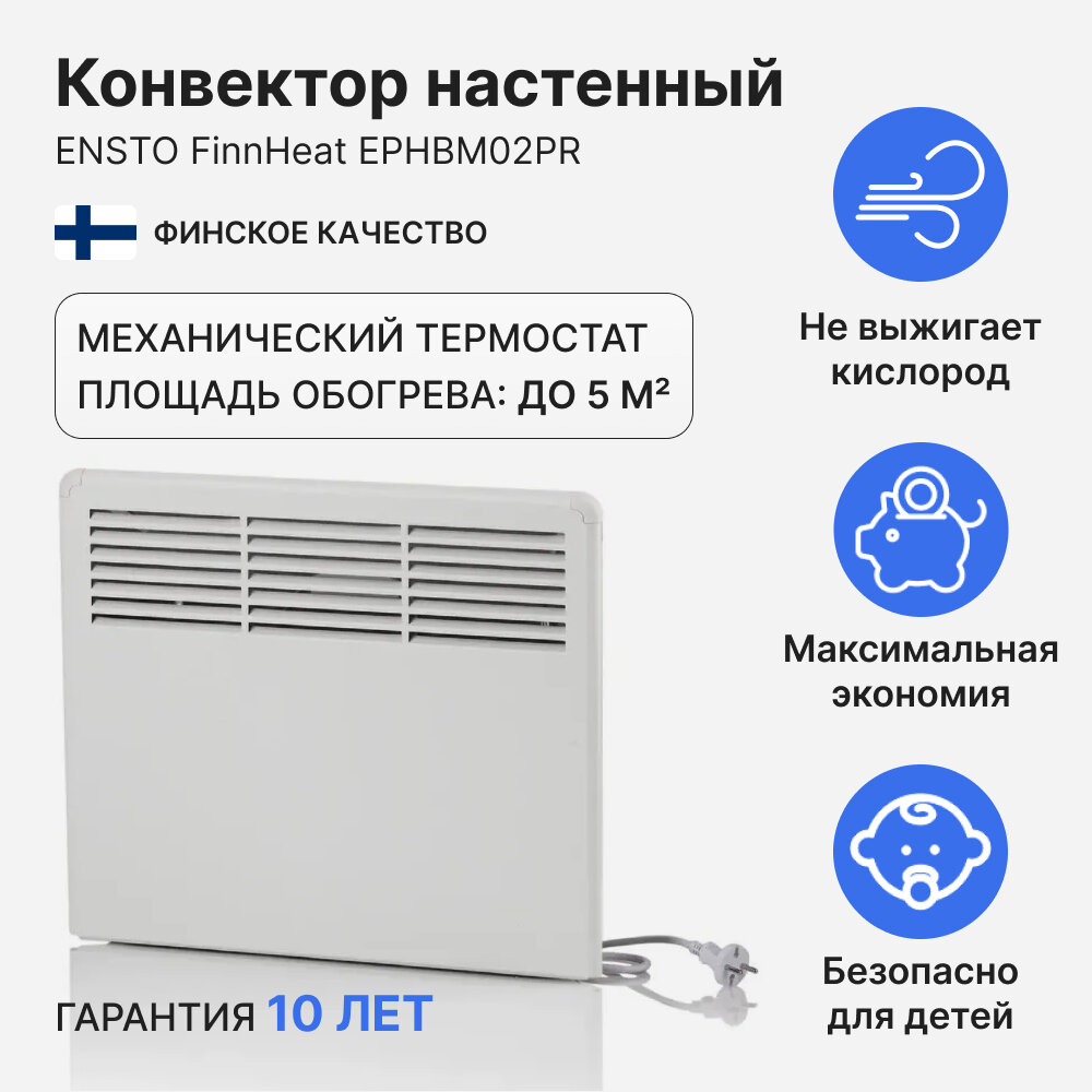 Конвектор настенный ENSTO FinnHeat 250Вт (451х389х85) механический термостат, EPHBM02PR