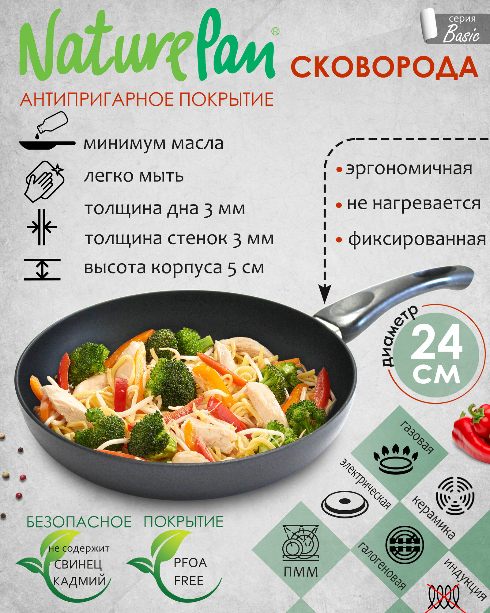 Сковорода с антипригарным покрытием, NaturePan Basic d24см h5см интересное: