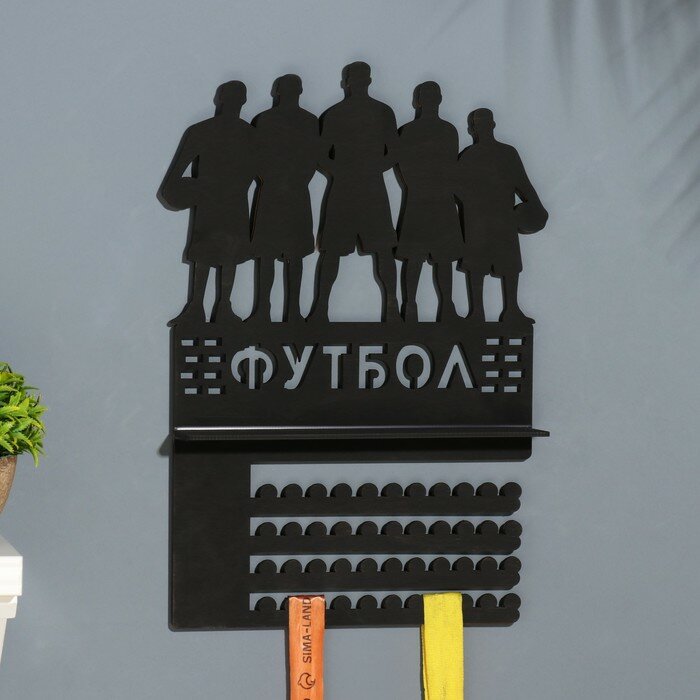 Медальница с полкой "Футбол" черный цвет, 42,5х27,5 см интересное: