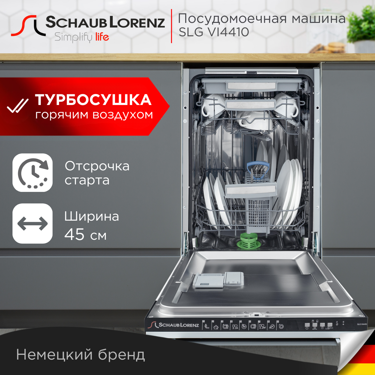 Посудомоечная машина встраиваемая Schaub Lorenz SLG VI4410, турбосушка, сенсор мутности воды, третья полка