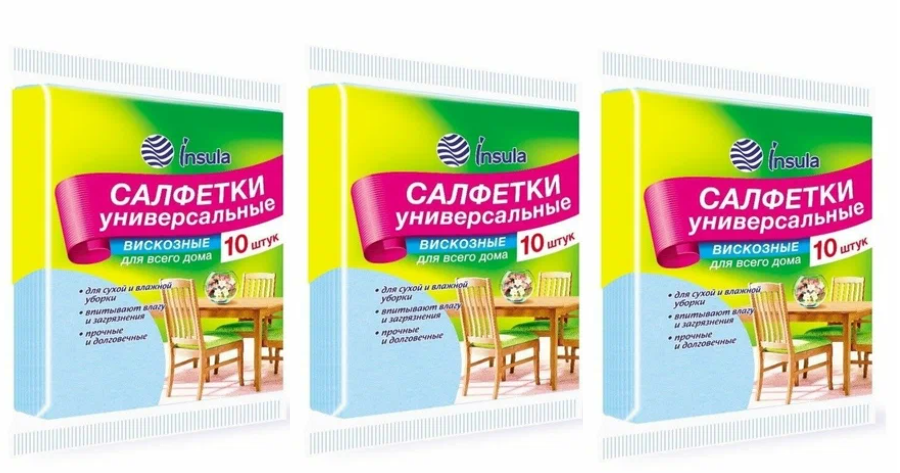 Салфетки вискозные Insula, универсальные, 10 шт, 3 уп. интересное: