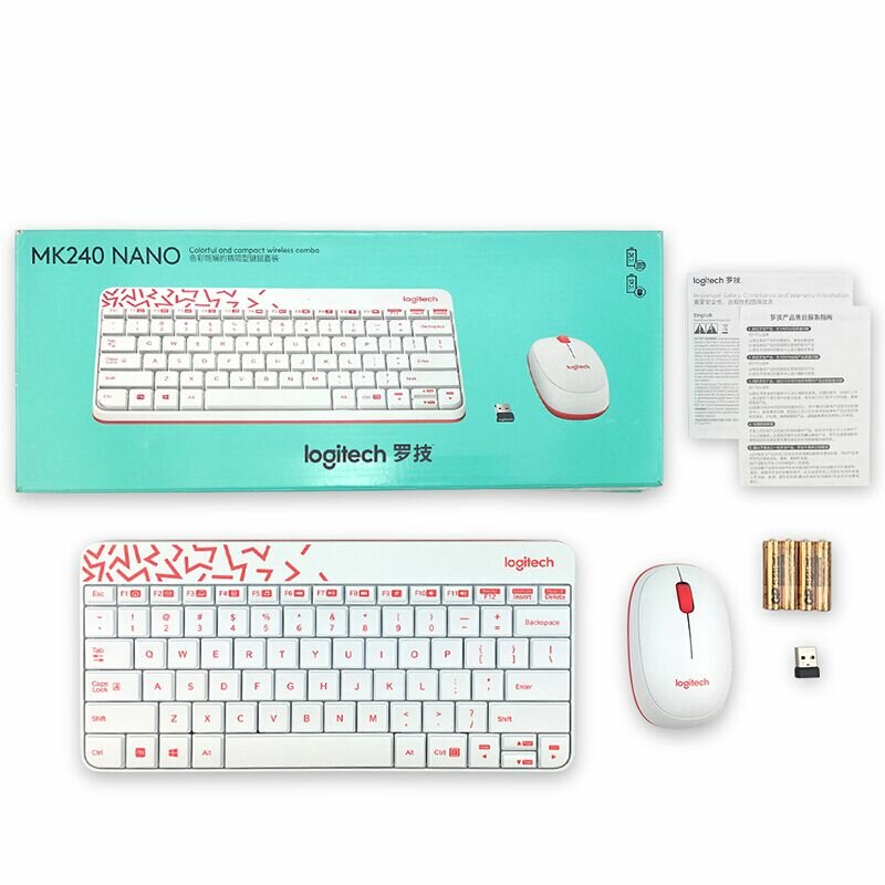 Купить Комплект клавиатура + мышь Logitech MK240 Nano, white/red (Английская раскладка)