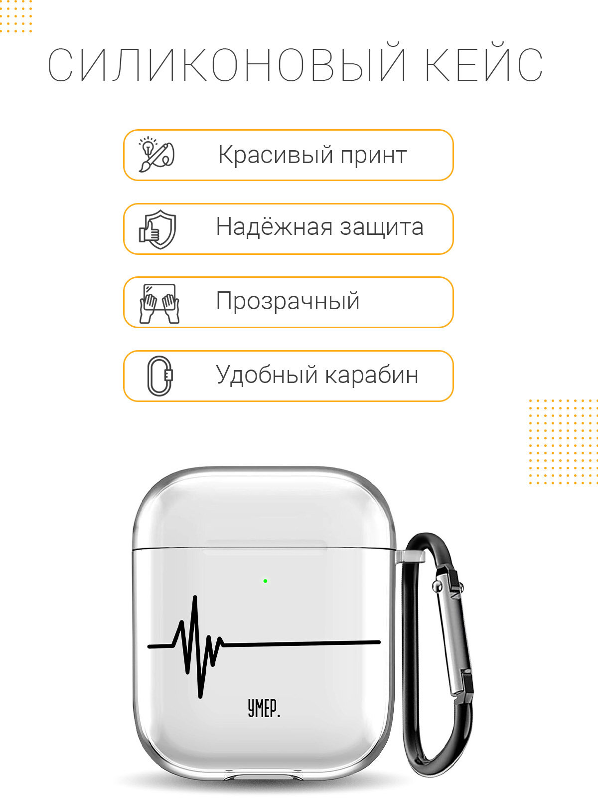 СохранитьПрозрачный чехол для наушников Apple Airpods 1 / 2 с 3D принтом "Dead" интересное: