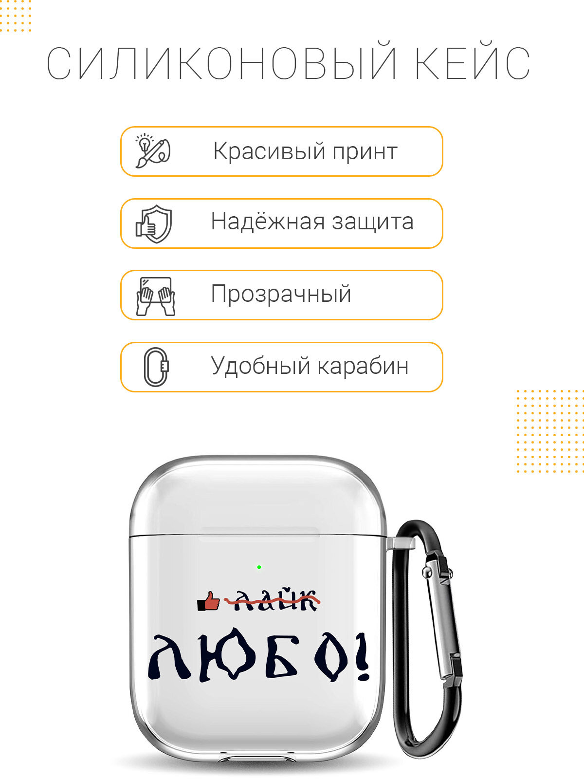 СохранитьПрозрачный чехол для наушников Apple Airpods 1 / 2 с 3D принтом "Like!" интересное: