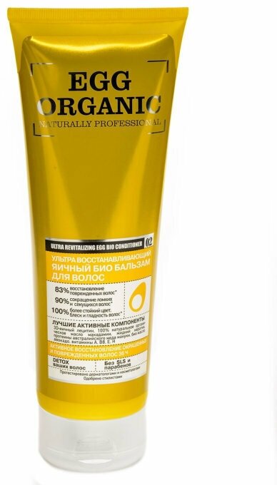 Бальзам био для волос Organic Naturally Ультра восстанавливающий яичный, 250мл х 1шт