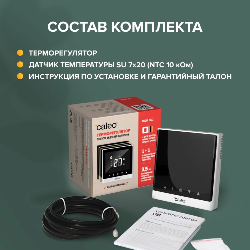 Купить Теплый пол электрический кабельный Caleo Easymat 140 Втм2, 6 м2 в комплекте с терморегулятором С732 встраиваемым, цифровым (цвет черный)