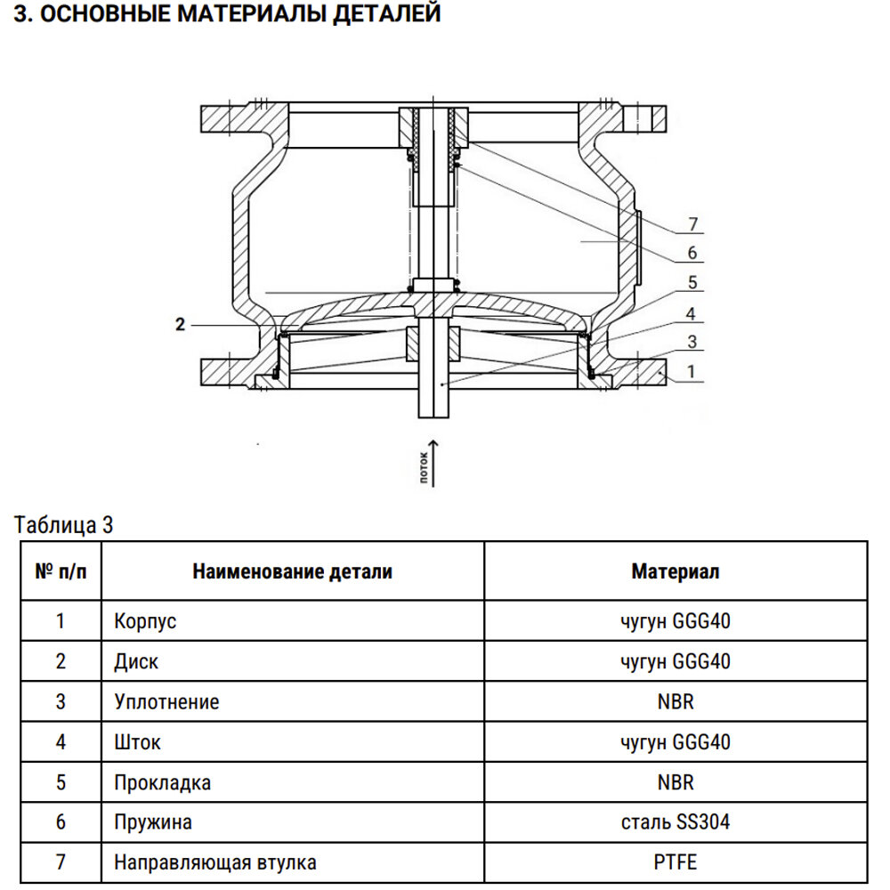 Клапан обратный пружинный DN ru 402А Ду65 Ру16 фланцевый, корпус GGG40, диск GGG40, уплотнение NBR, L=170 мм, температура 80°C