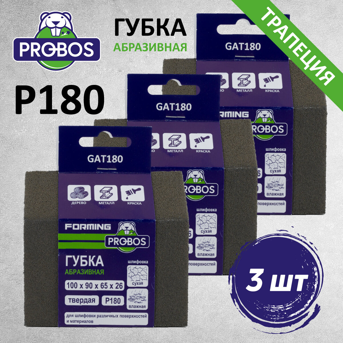 Губка абразивная PROBOS Forming, трапецевидный профиль 100х90х65х26, P180, 3 шт/уп интересное: