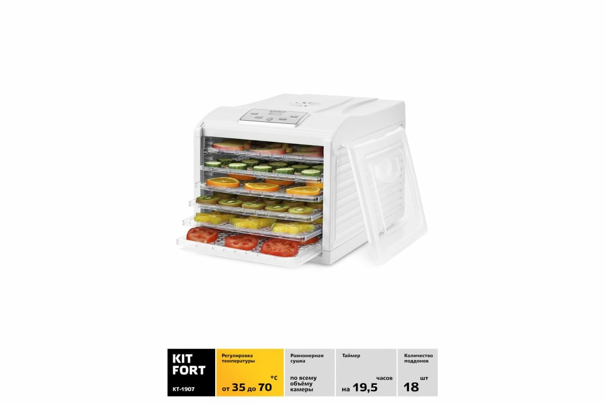 Сушилка для овощей и фруктов KITFORT КТ-1907, белый, 18 поддонов