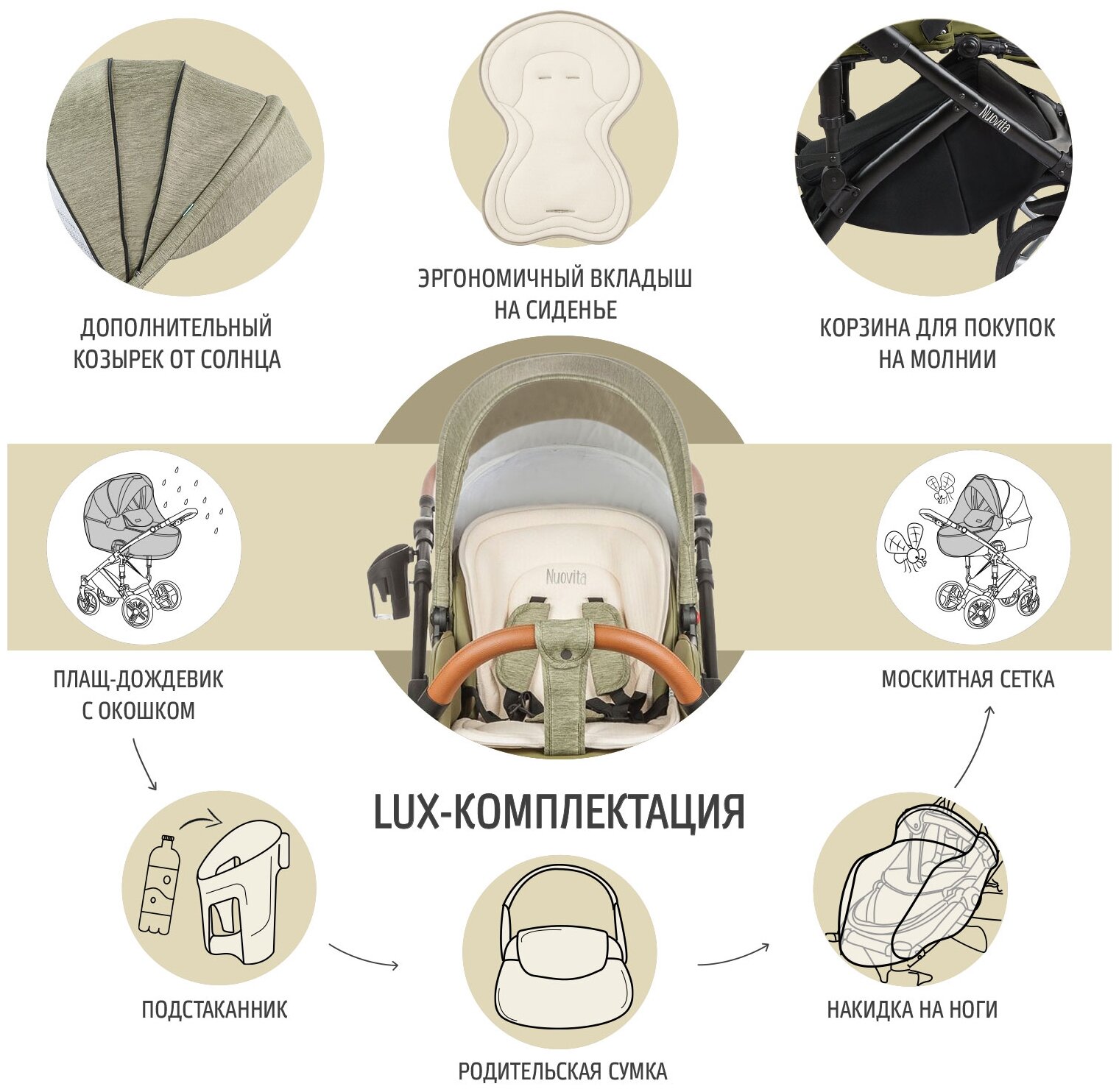 Детская коляска Nuovita Carro Sport 2 в 1 (Beige/Бежевый)