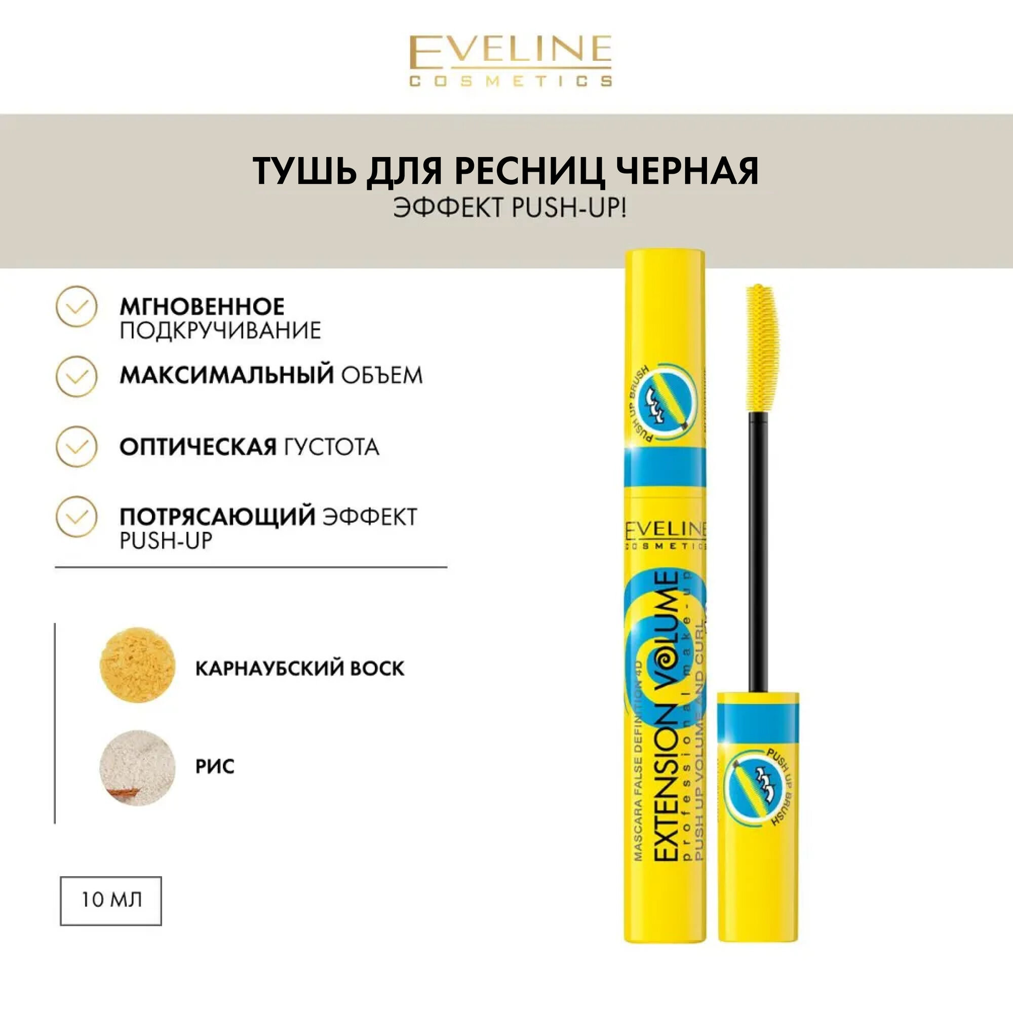 Тушь для ресниц Eveline Extension Volume, эффект Push-Up х 10 интересное:
