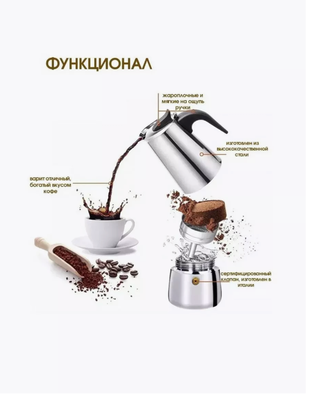 | Минусы: | индукционная плита не видит эту кофеварку |