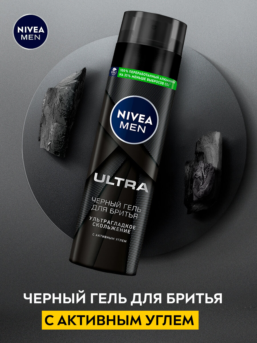 Гель для бритья NIVEA MEN Ultra с активным углем ультрагладкое скольжение, 200 мл