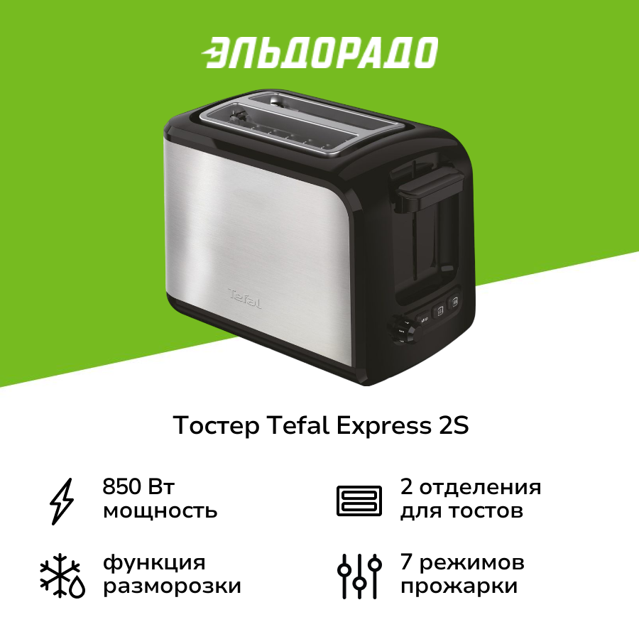 Тостер Tefal Express TT410D38, с 7 режимами, разморозкой и подогревом, 850 Вт, серебристый
