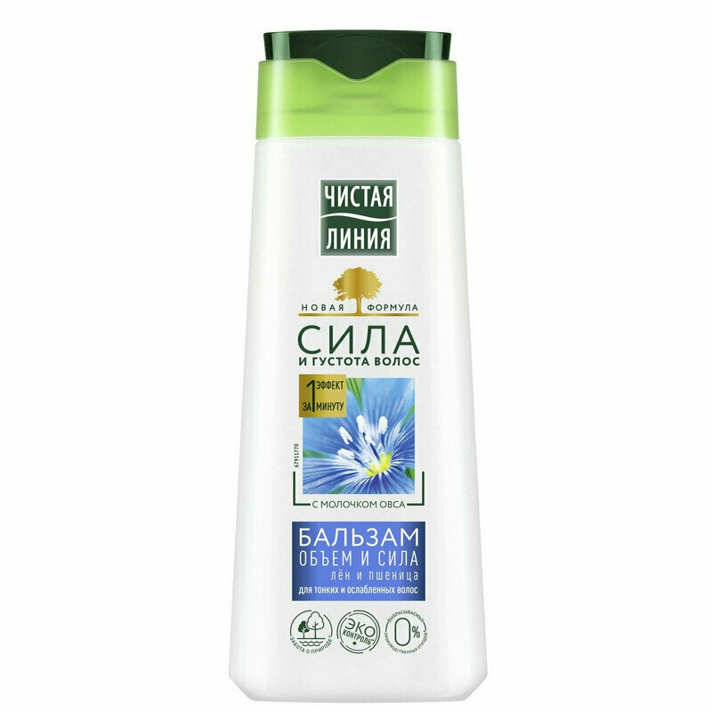 Бальзам-ополаскиватель для волос Чистая Линия Объем и сила для тонких волос с экстрактами льна и пшеницы 380мл