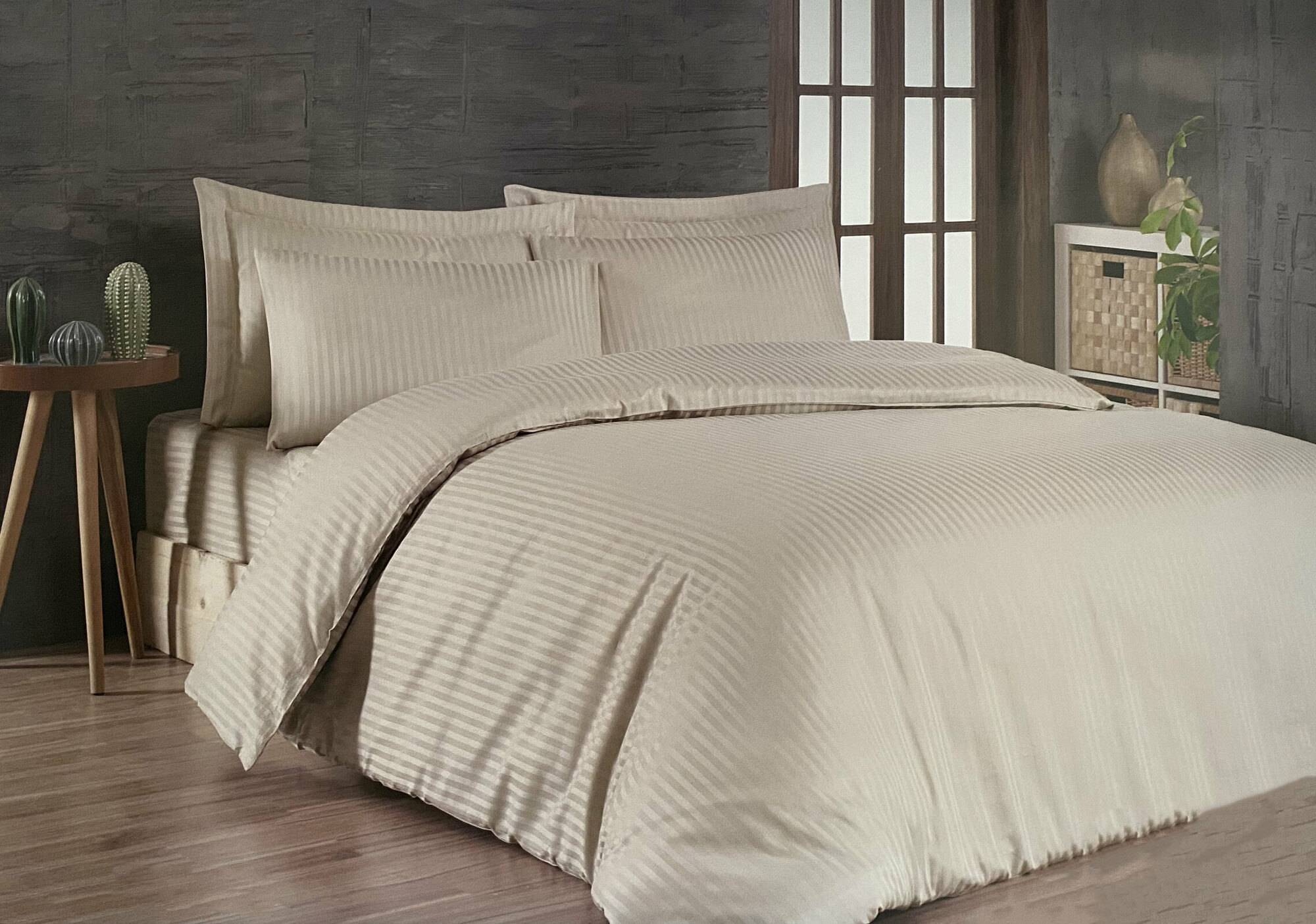 Постельное белье Евро Страйп-Сатин Maison Dor New Rails Bej интересное: