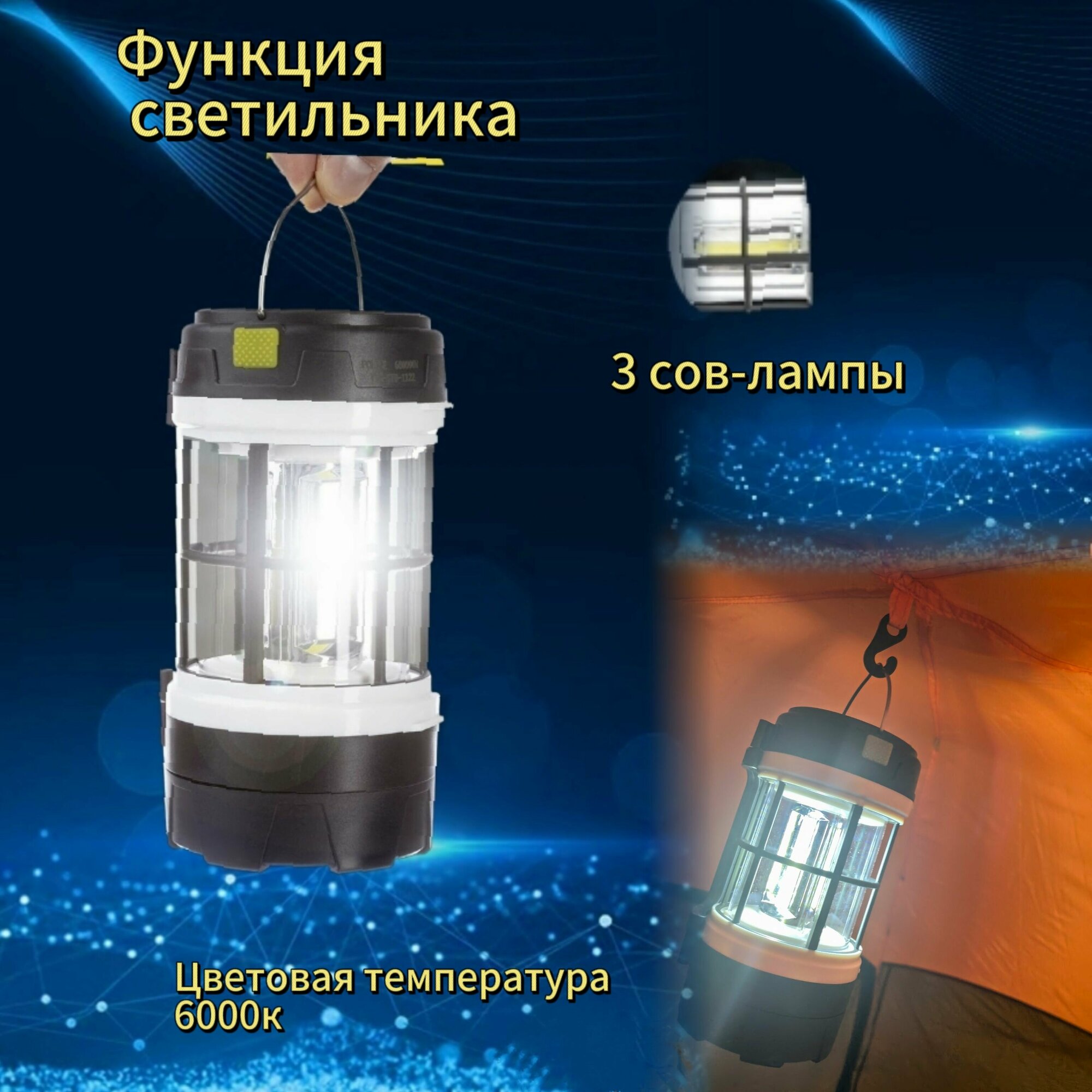 Фонарь аккумуляторный ручной кемпинговый яркий подвесной интересное: