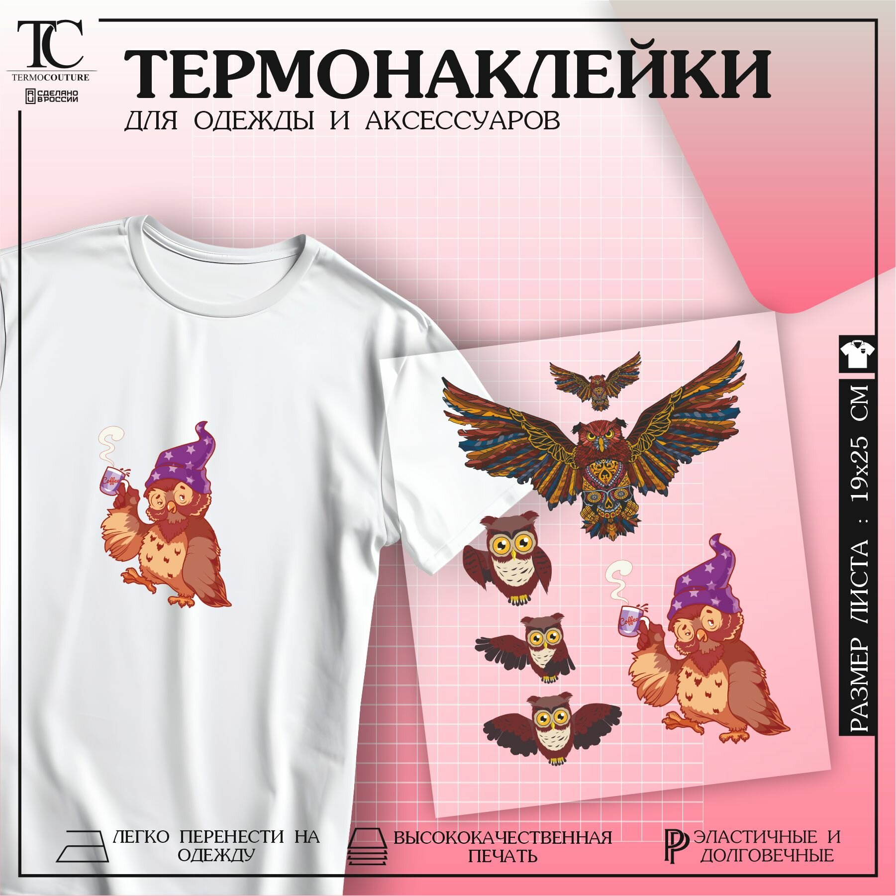 Купить Термонаклейка на одежду Совы