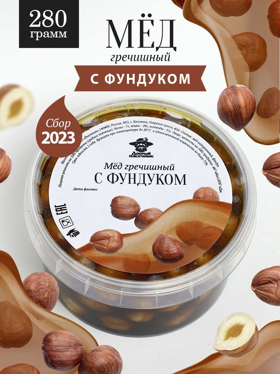 Гречишный мед с фундуком 280 г, к чаю, полезный подарок, правильное питание интересное: