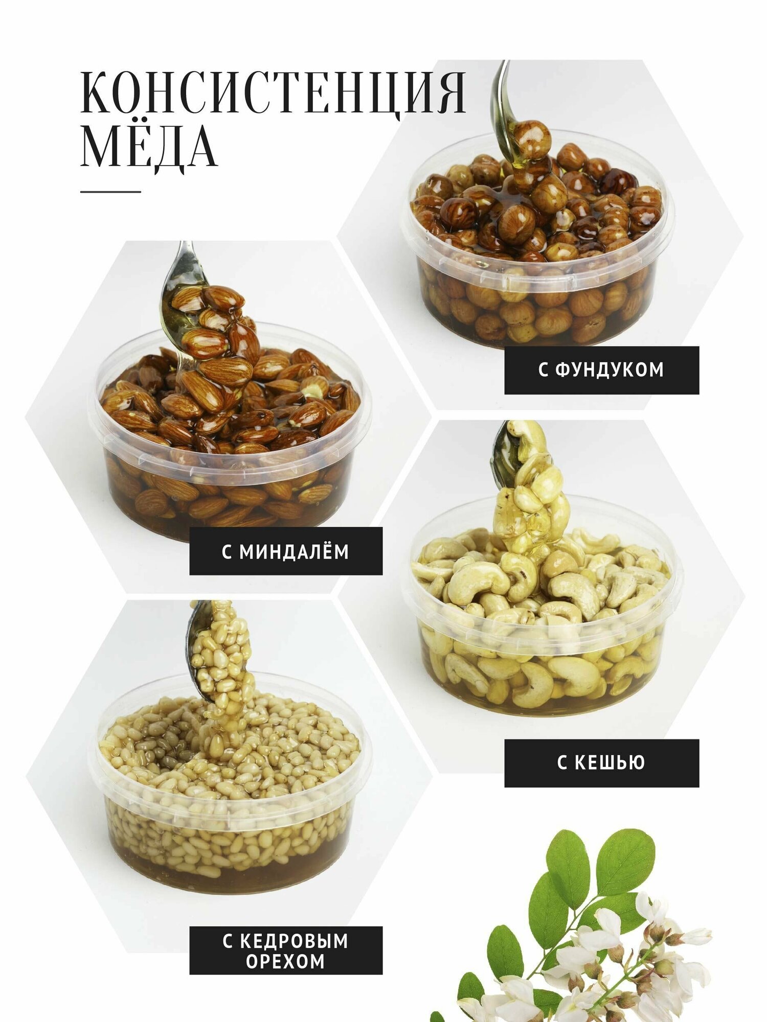 Набор акациевого меда с орехами ассорти, 4 банки по 460 г интересное: