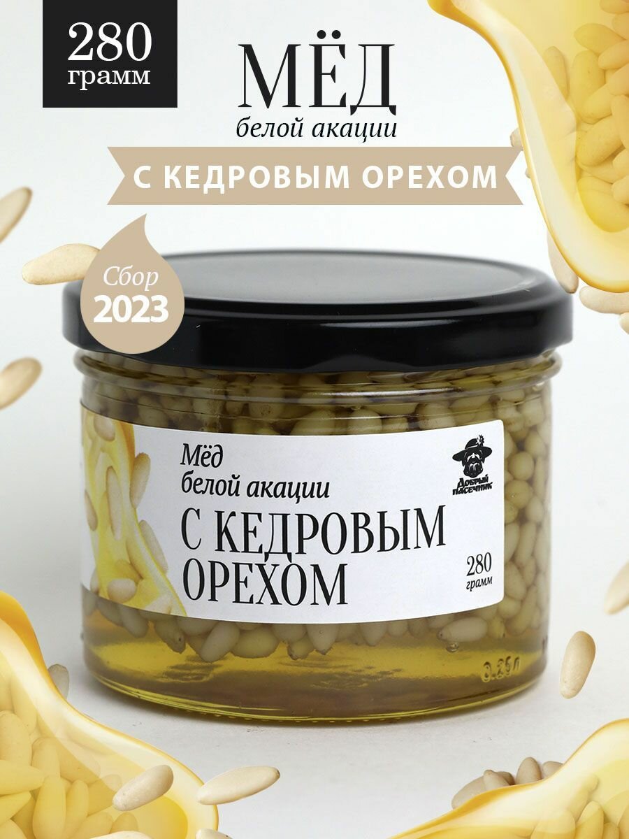 Акациевый мед с кедровым орехом 280 г в стеклянной банке интересное: