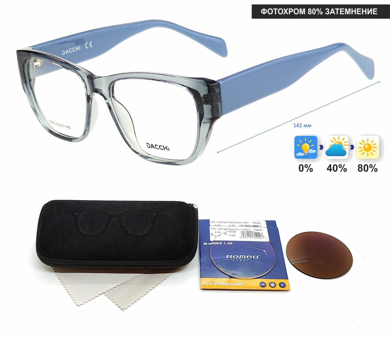 Фотохромные очки для чтения с футляром-змейка DACCHI мод. 37875 Цвет 12 с линзами ROMEO 1.56 FAST Photocolor BROWN, HMC+ +2.50 РЦ 66-68 интересное: