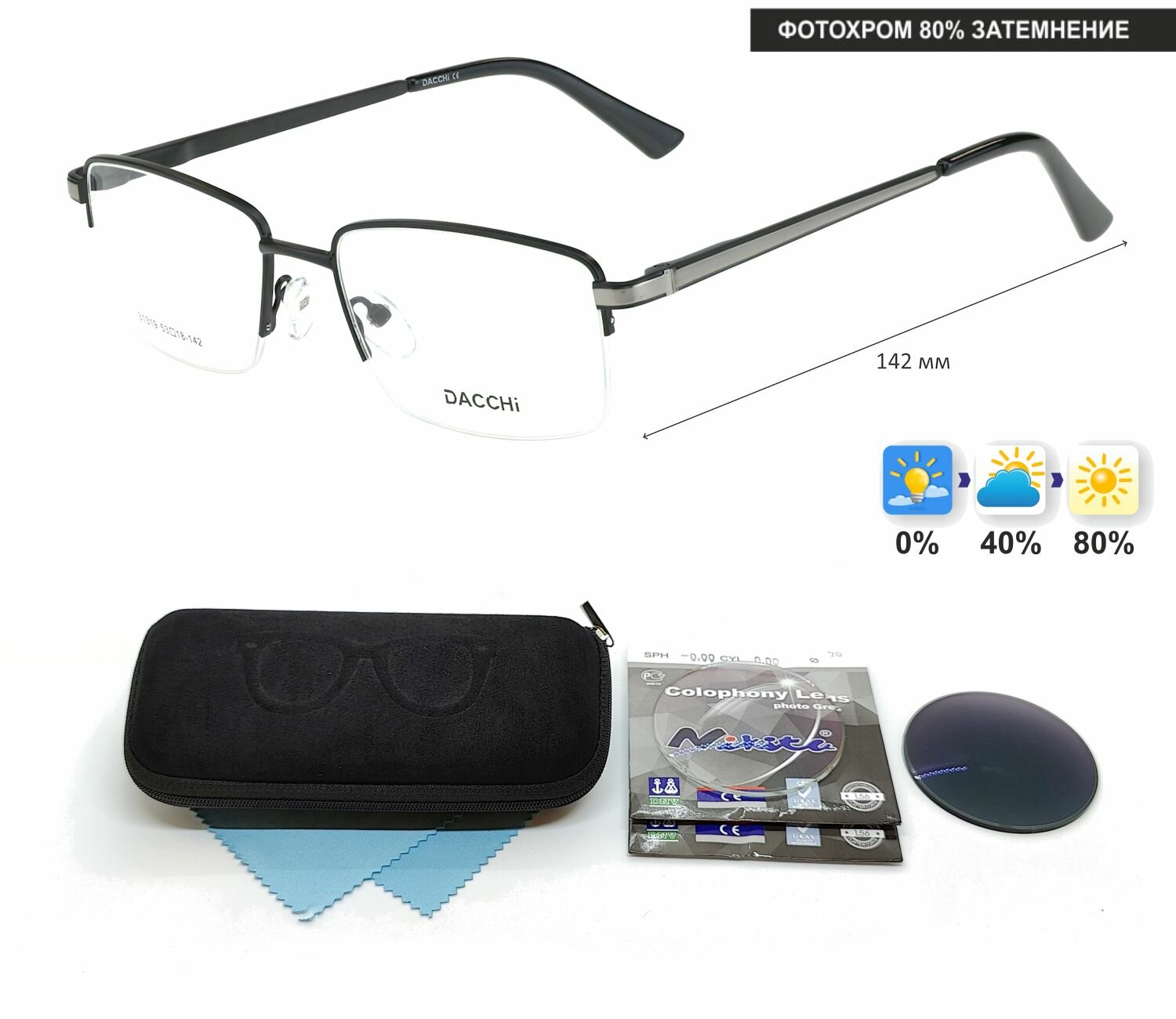 Фотохромные очки с футляром-змейка DACCHI мод. 31319 Цвет 1 с линзами NIKITA 1.56 Colophony GRAY, HMC+ -1.00 РЦ 64-66 интересное: