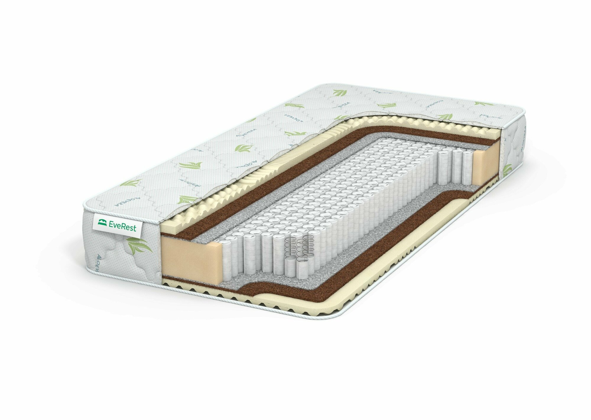 Матрас Everest Латекс Массаж Хард S-1000 70х185 см, независимый пружинный блок S1000, трикотажный чехол Aloe Vera