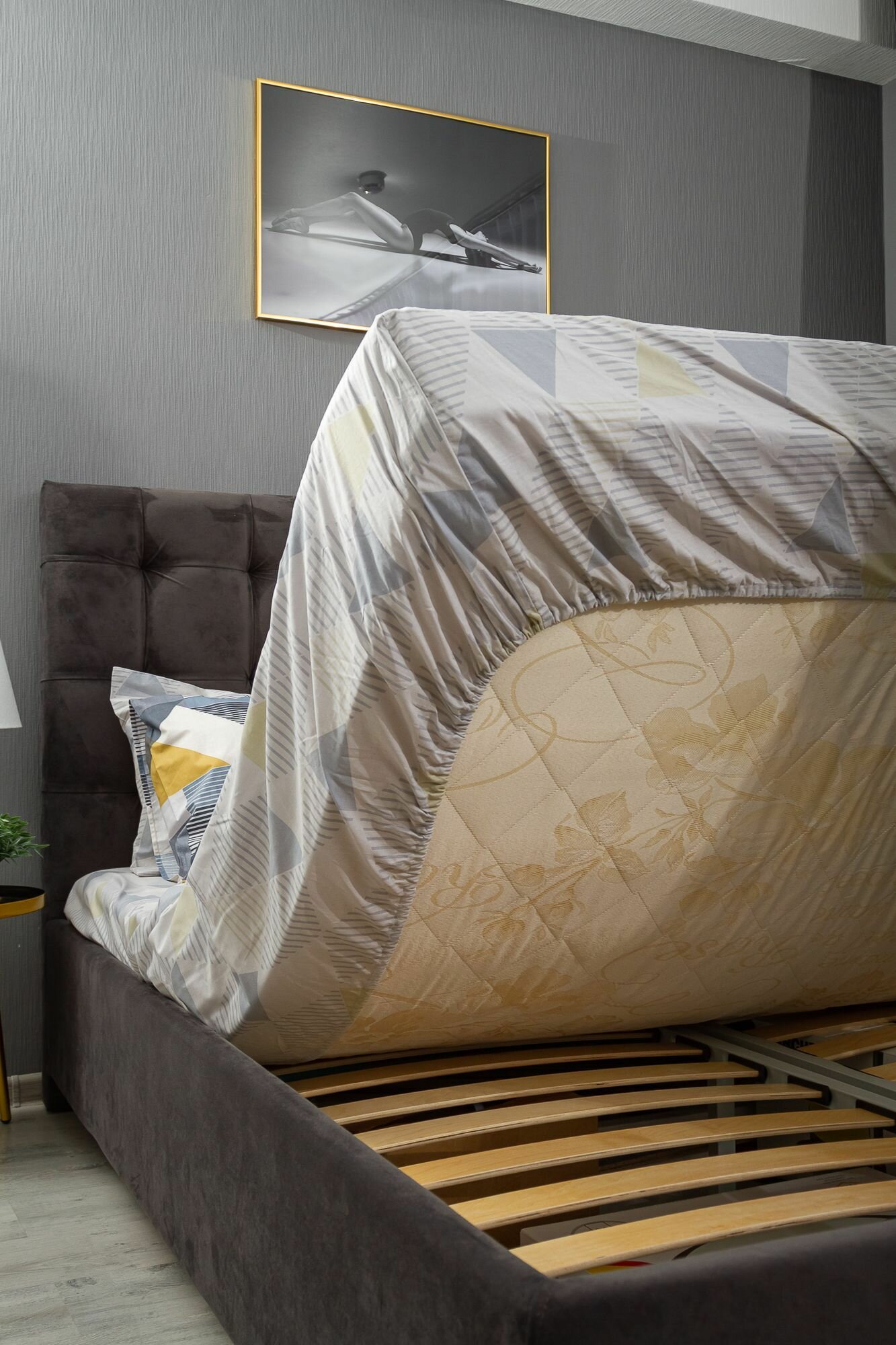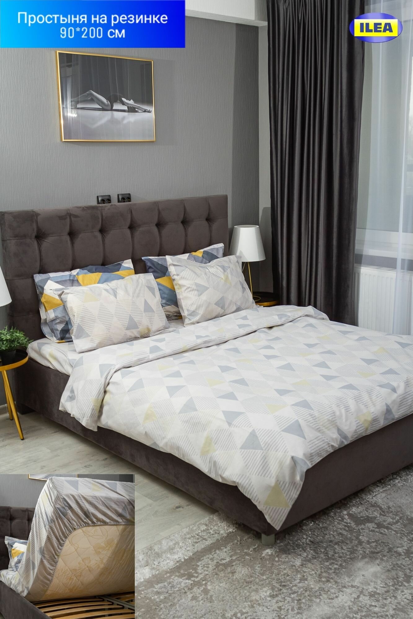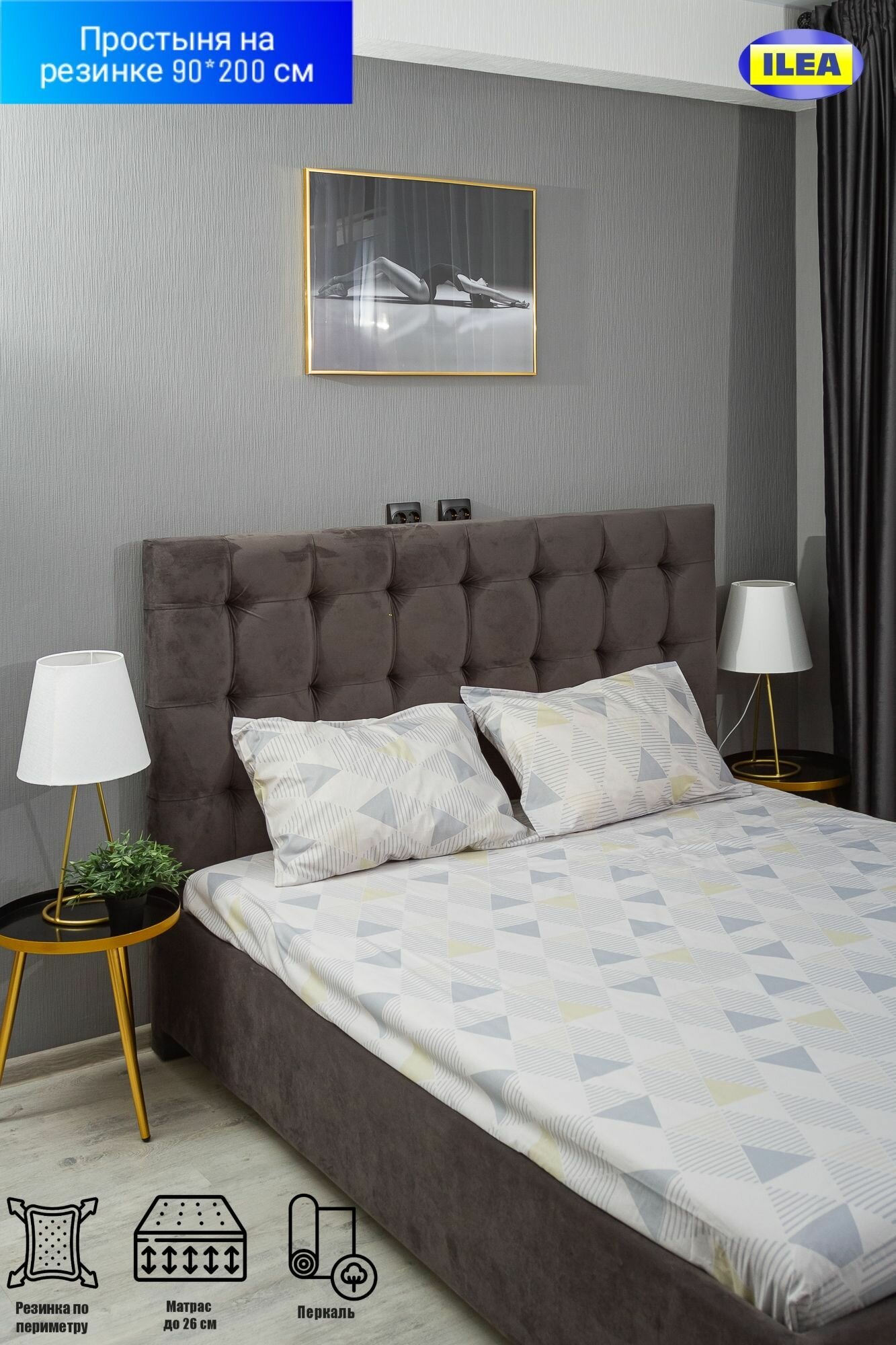 Простыня на резинке ILEA Люмирвэкст Серый Перкаль 90х200х26 см интересное: