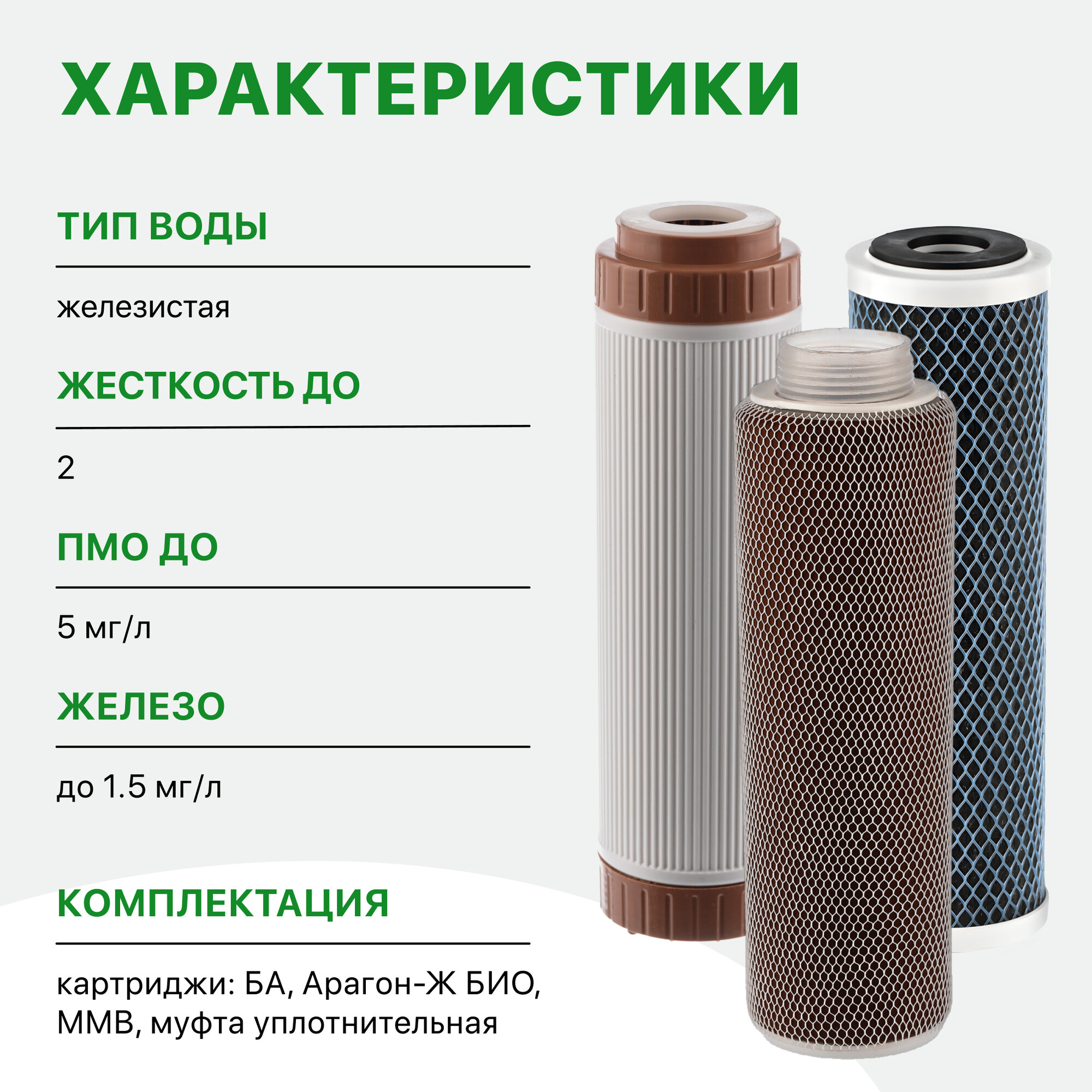 | Дополнительная информация | используется в стационарных трехступенчатых фильтрах Гейзер БИО 341 и Гейзер БИО 342 (для очищения железистой воды); комплектация: Арагон-Ж БИО, БА - 10SL, MMB - 10SL, муфта уплотнительная тип "И" |