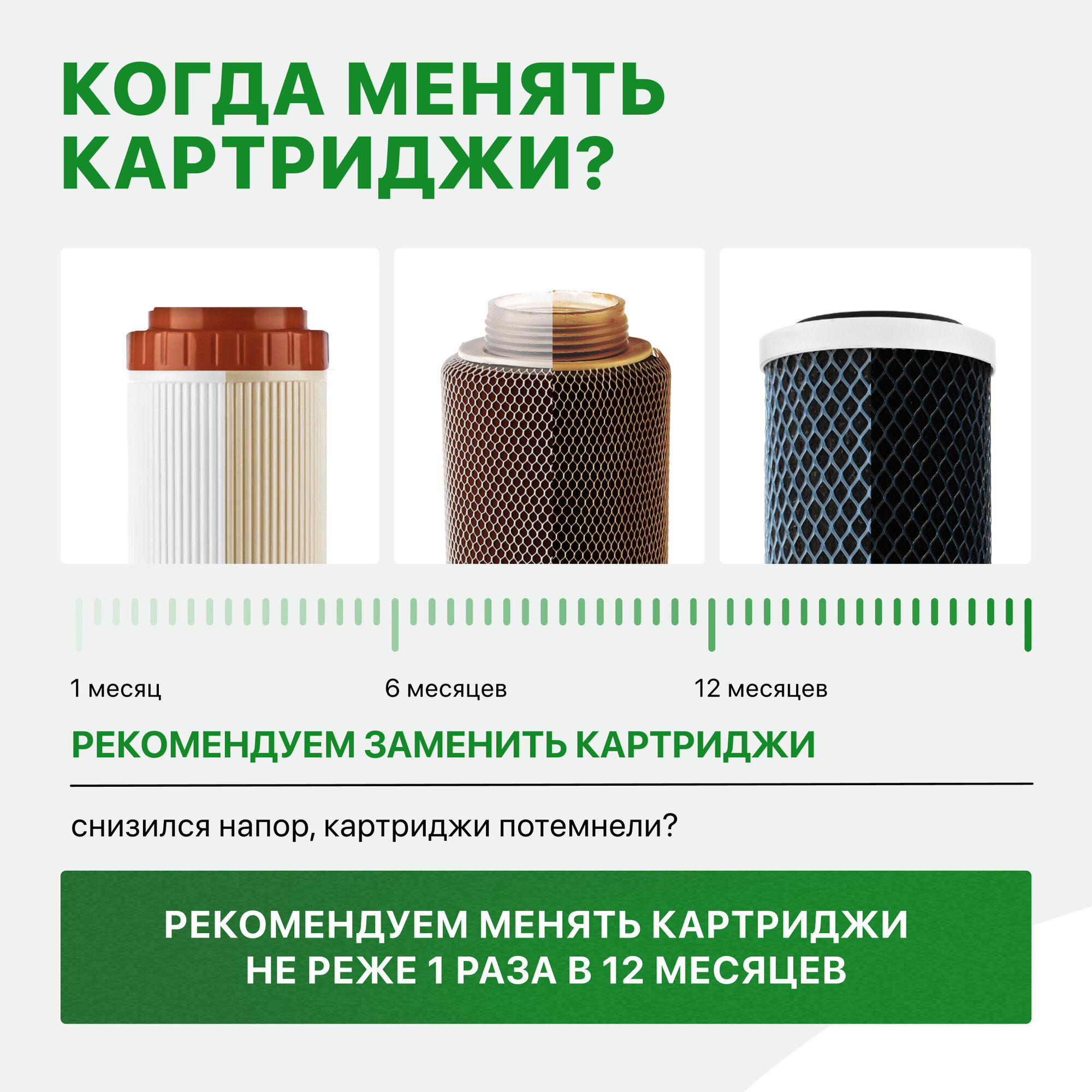 | Отзыв: | Пользуюсь этим комплектом в Подмосковье, вода из скважины, нравится всей семье. |