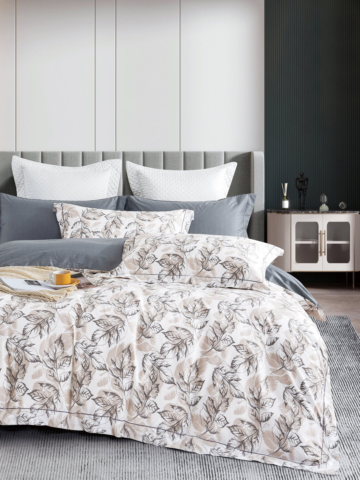 Сатиновое белье с простыней на резинке LS-112 Elin (кремовый-серый), 1,5 спальный (наволочки 70x70) интересное: