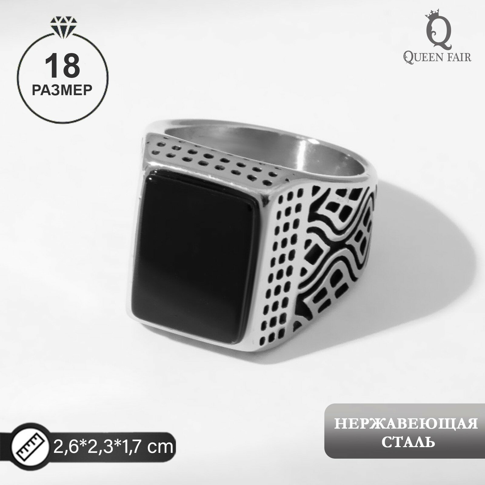 Купить Кольцо мужское "Перстень" волны, цвет чёрный в серебре, 18 размер