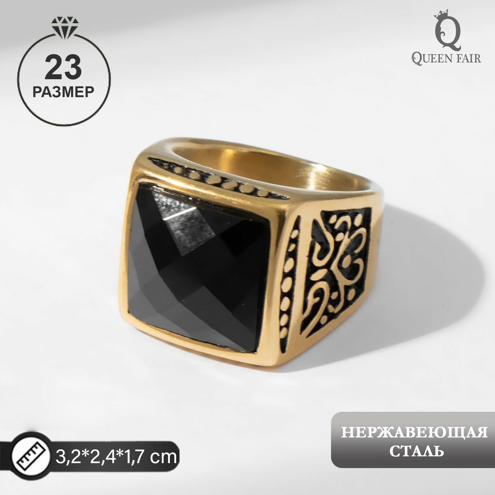 Кольцо мужское "Перстень" ажур, цвет чёрный в золоте, 23 размер интересное: