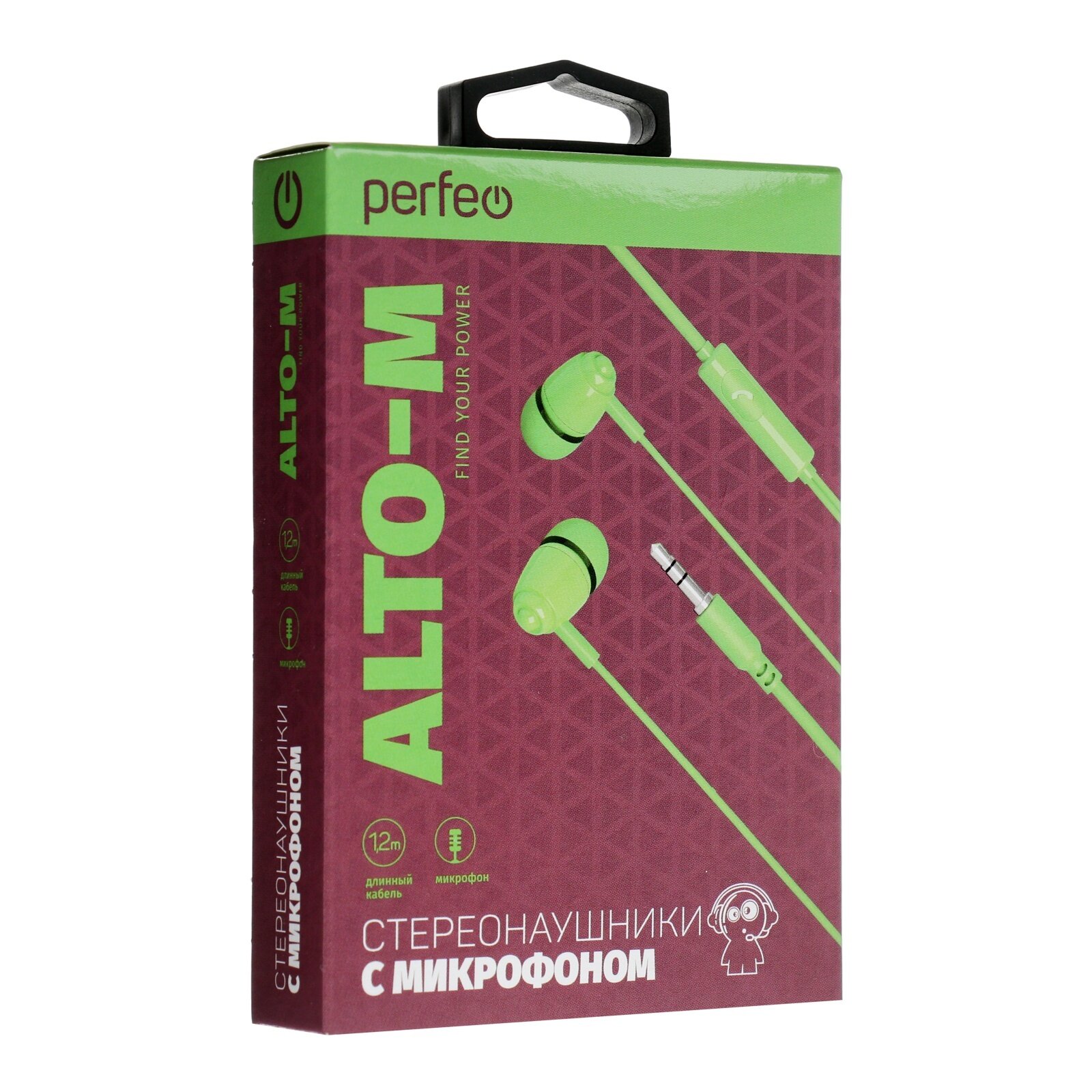 Купить Наушники ALTO-M, вакуумные, микрофон, 104 дБ, 32 Ом, 3.5 мм, 1.2 м, зеленые