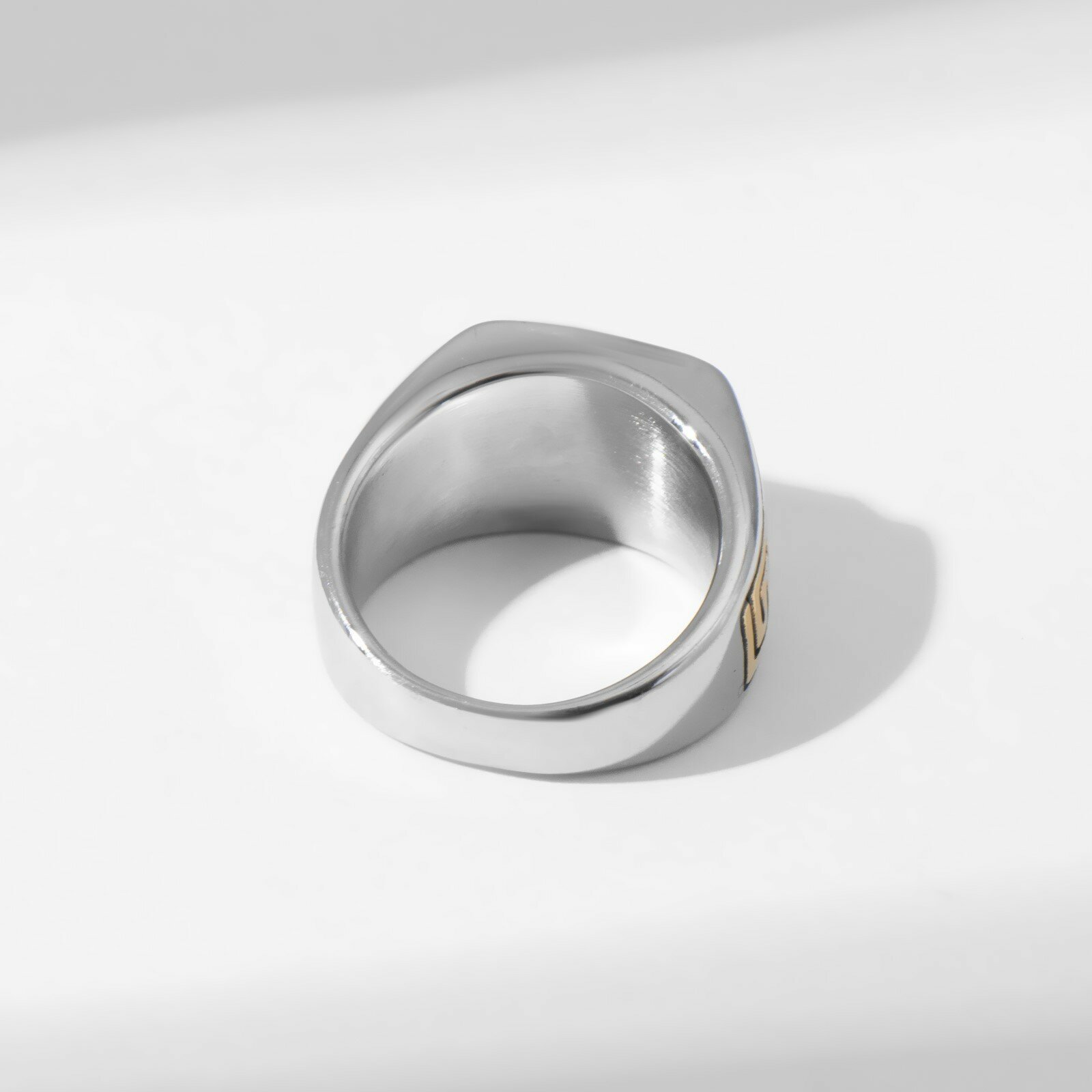 Кольцо мужское "Перстень" лабиринт, цвет золотисто-чёрный в серебре, 22 размер интересное: