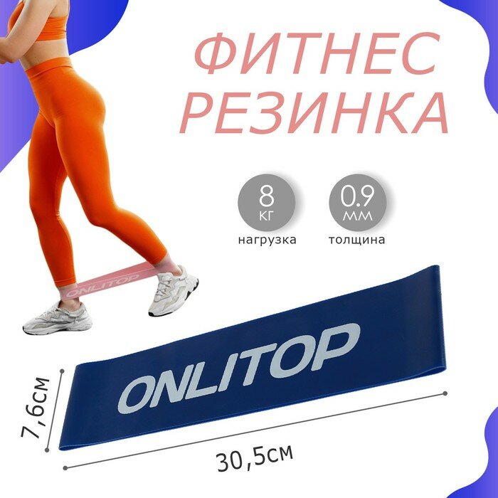 Фитнес-резинка ONLYTOP, 30,5х7,6х0,09 см, нагрузка 8 кг, цвет синий интересное: