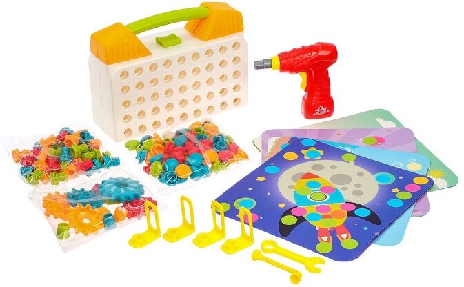 Конструктор винтовая мозайка «Пуговки шестеренки», 3 в 1, с шуруповертом, 147 деталей интересное: