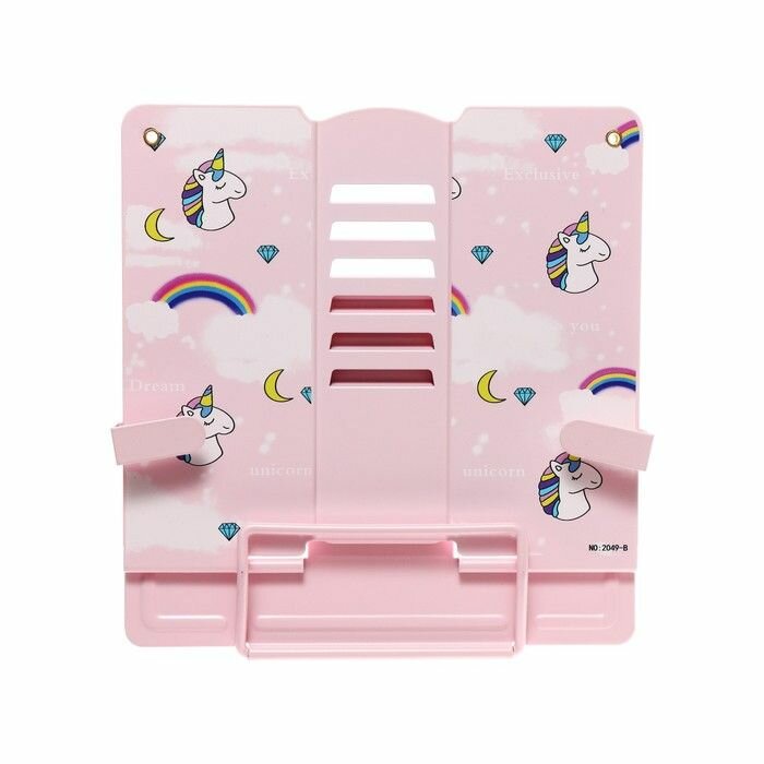 Купить Подставка настольная "Единорожка" для книг и учебников с боковыми держателями, держатель школьный на стол для тетрадей с регулируемым углом наклона, 21х19х16,5см