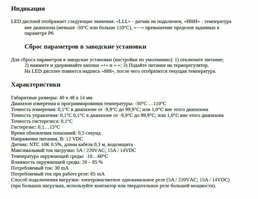 W1209, Термореле с герметичным датчиком 12В, 10А, от -50 ~ +110°C интересное:
