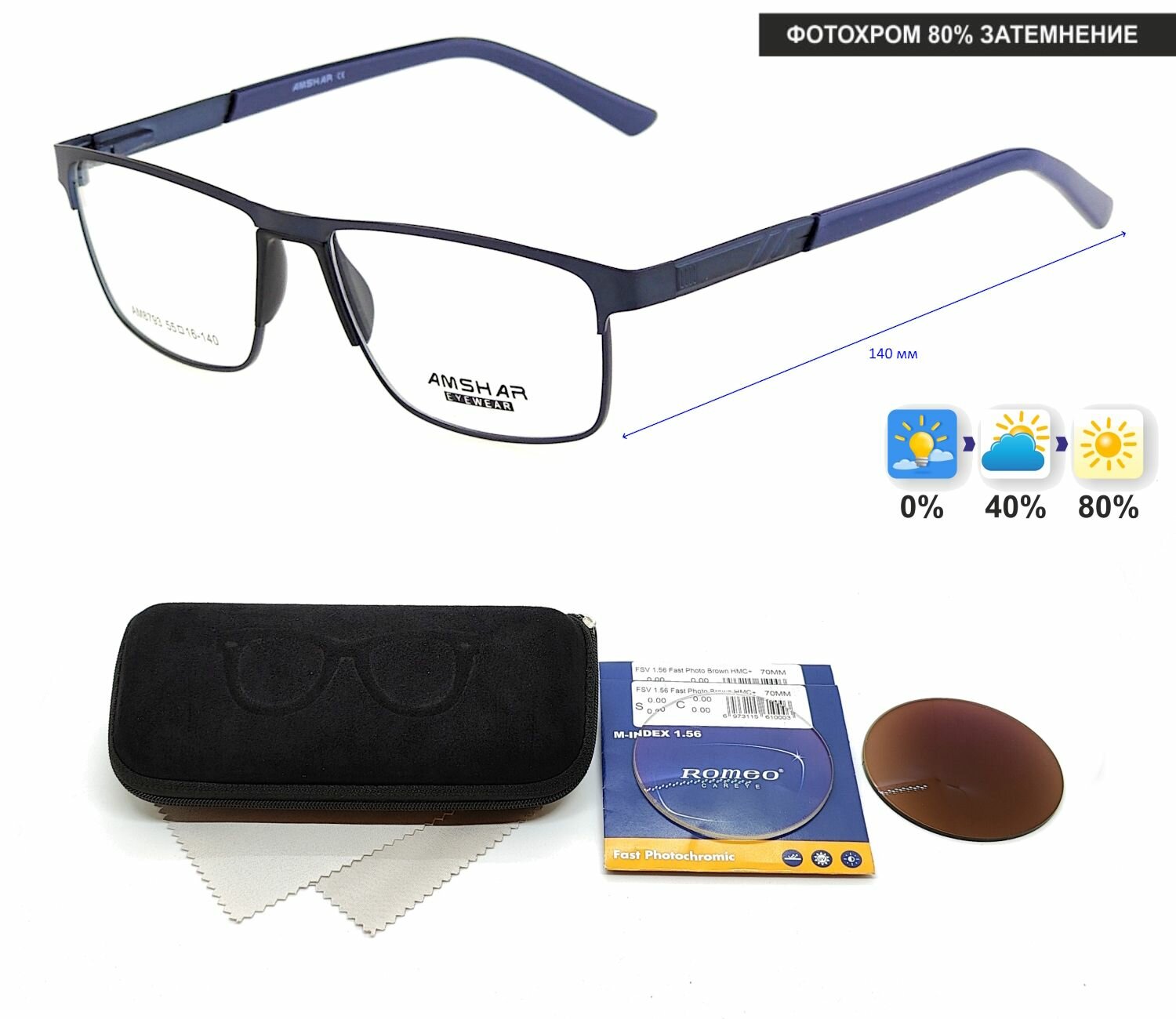 Фотохромные очки с футляром-змейка AMSHAR мод. 8793 Цвет 8 с линзами ROMEO 1.56 FAST Photocolor BROWN, HMC+ +1.00 РЦ 60-62 интересное: