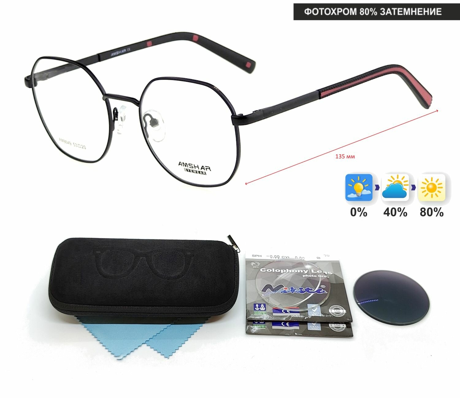 Фотохромные очки с футляром-змейка AMSHAR мод. 8649 Цвет 6-1 с линзами NIKITA 1.56 Colophony GRAY, HMC+ +1.00 РЦ 60-62 интересное: