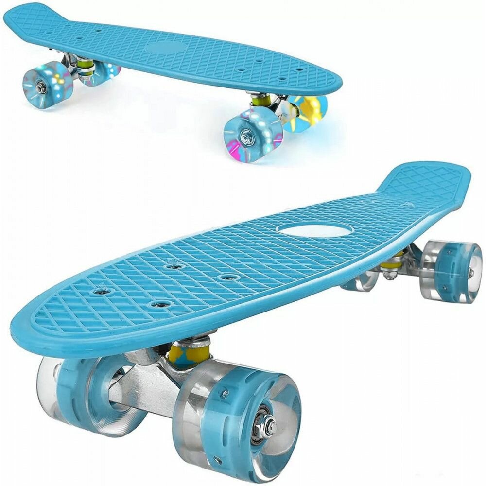 Скейтборд со светящимися колёсами / Пенни борд / Лонгборд до 80 кг / Круизер, Голубой интересное: