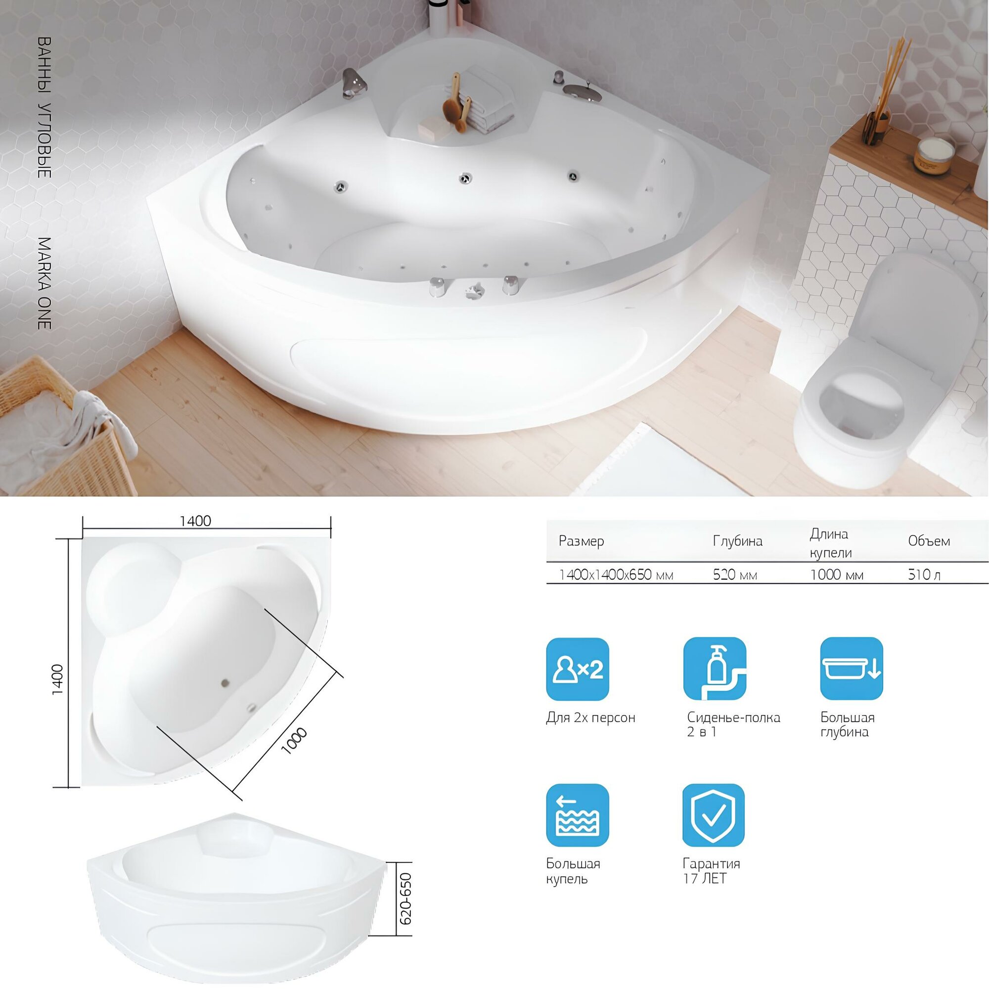 Акриловая угловая ванна Marka One Trapani, 140 х 140 интересное: