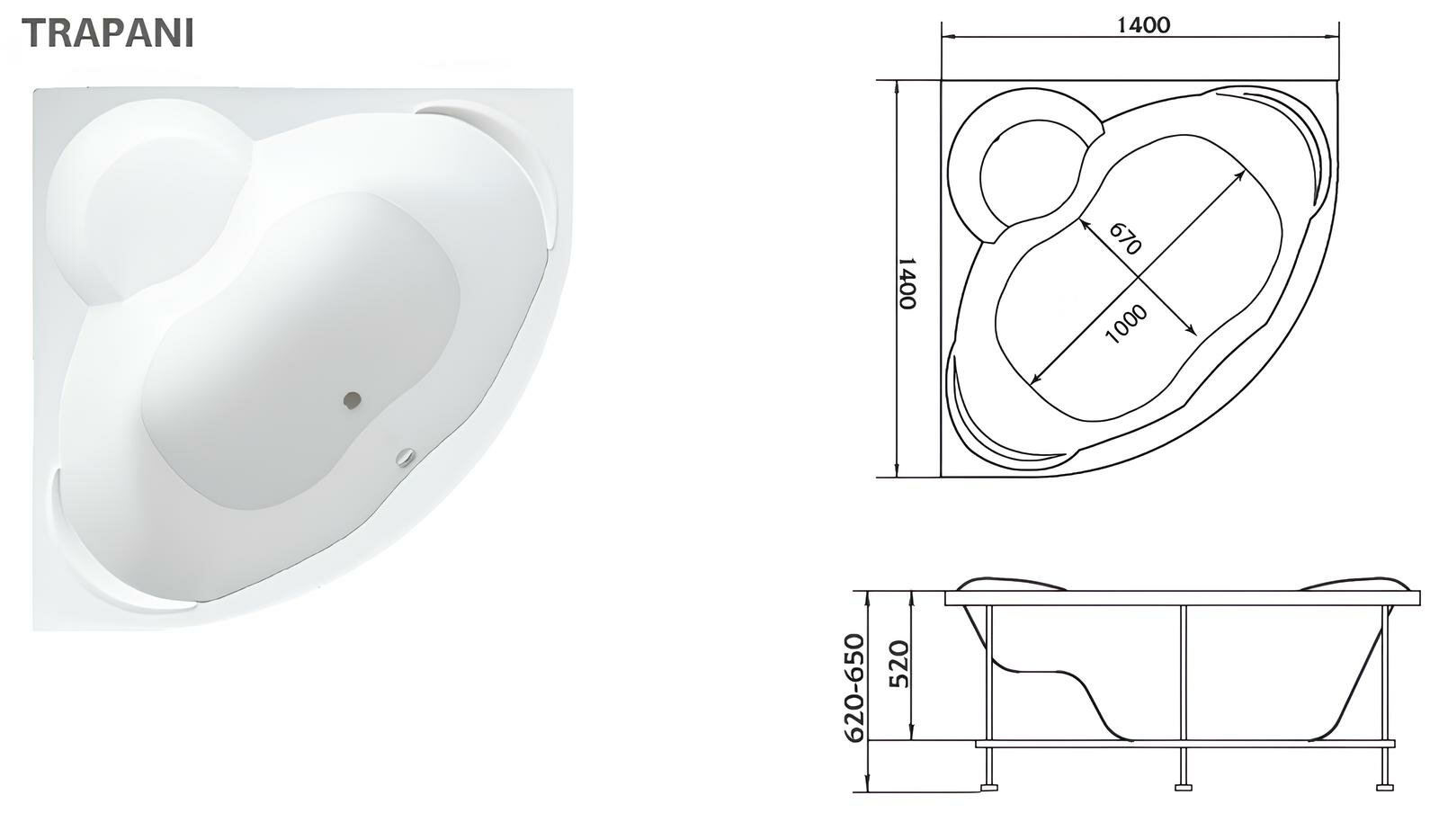Ванна акриловая угловая 1MarKa Trapani 1400х1400 белый (01тр1414)